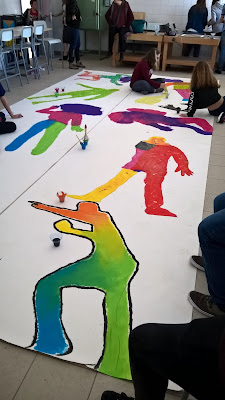 Ontem, dia 17 de maio, estivemos "No Meio da Multidão" e criamos sombras a partir do desenho da figura humana usando a silhueta do próprio corpo.