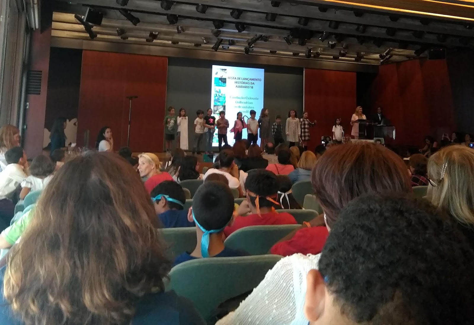 Numa festa que celebra a criatividade e a solidariedade, foi com grande alegria que a Margarida, em representação do atual 7ºA, subiu ao palco para receber o Certificado de Participação do nosso Agrupamento no Concurso de Histórias da Ajudaris. O livro "Histórias da Ajudaris'18" que inclui uma história criada pelo 6ºA (atual 7ºA) vai estar à venda na Biblioteca Escolar da Escola Básica Dr. Afonso Rodrigues Pereira.