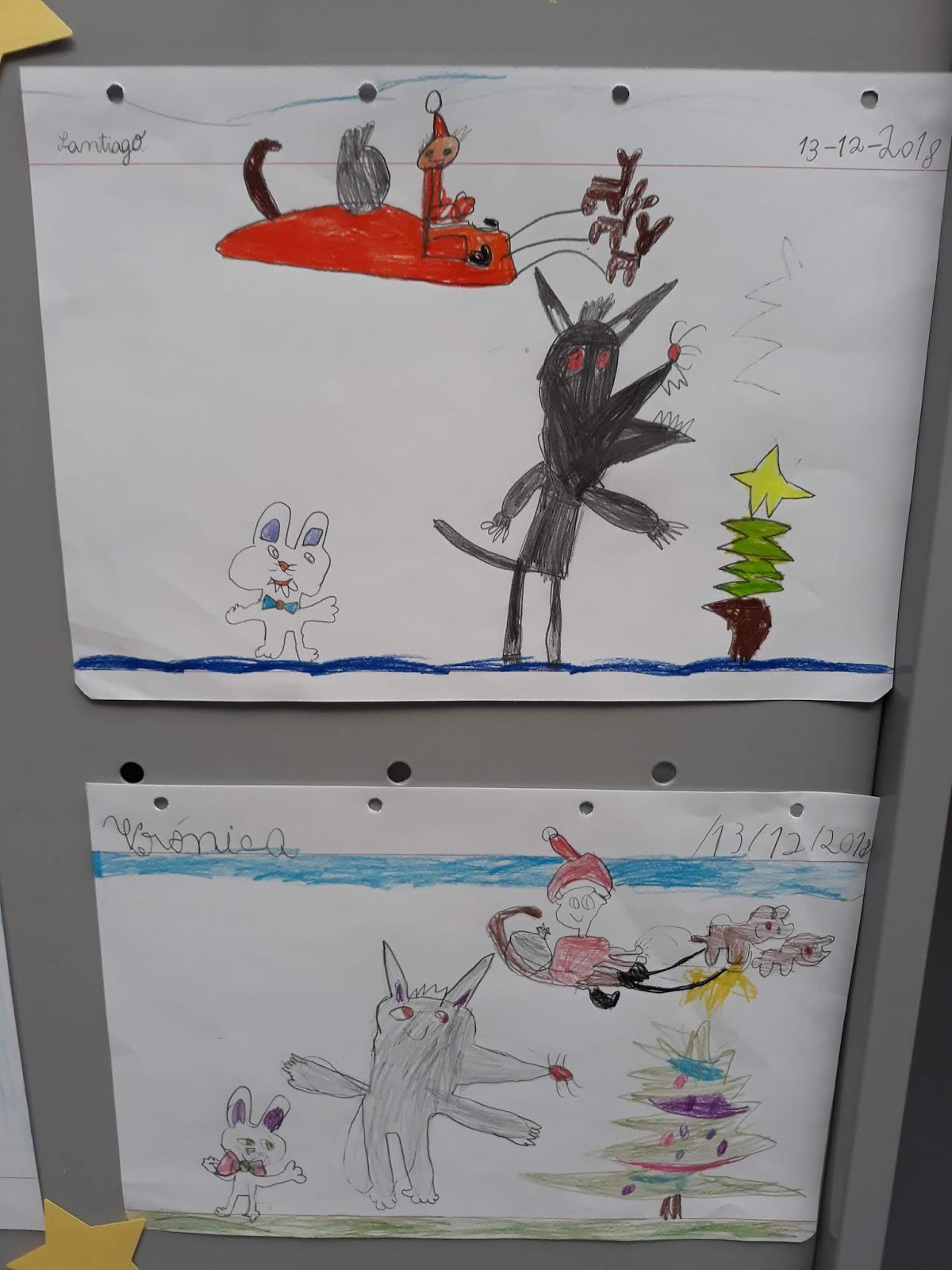 Trabalhos realizados pelos alunos do 1º e 2º anos da Escola Básica de Miragaia, depois de verem a curta de animação "Feliz Natal Lobo Mau" na Biblioteca Escolar.